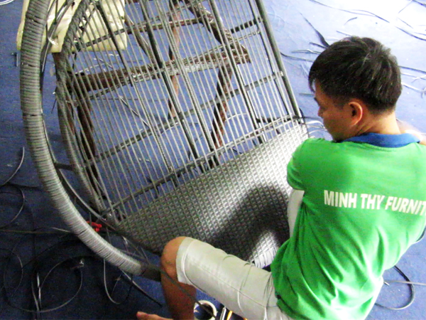 Hướng dẫn cách đan ghế hồ bơi nhựa giả mây với khung sắt mạ kẽm sơn tĩnh điện đan sợi mây nhựa giả mây kháng uv ( tia cực tím). Qua các công đoạn : quấn lót, giăng sườn, đan…